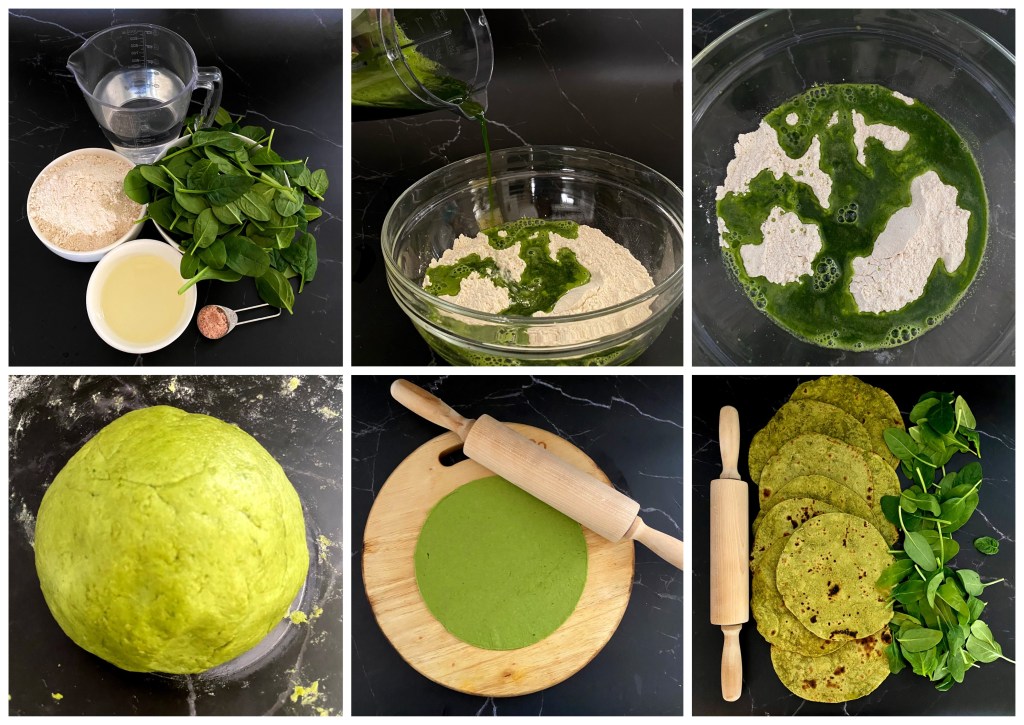 Spinach chapati is a great nutritious choice and it also comes out in a beautiful colour which makes it attractive for kids. When I have some leftover spinach I always end up making spinach chapatis